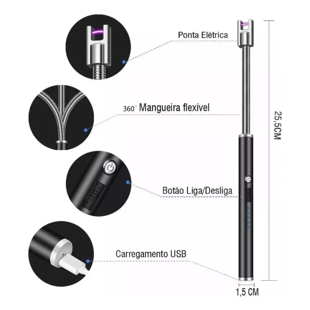 Acendedor Elétrico De Fogão, Velas e Churrasqueira - Recarregável USB